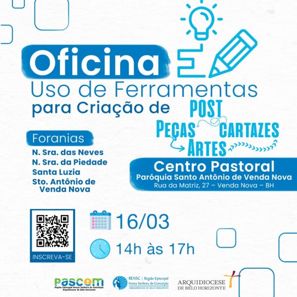Tema: Uso de ferramentas para criação de post, peças, cartazes com Júlia Pinheiro da Assessoria de Comunicação da Arquidiocese de Belo Horizonte