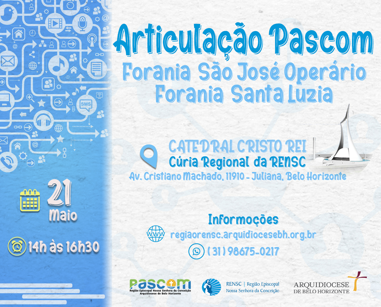 Confirme presença no whastapp da Rensc 98675-0217 ou pelo email: rensc @arquidiocesebh.org.br
