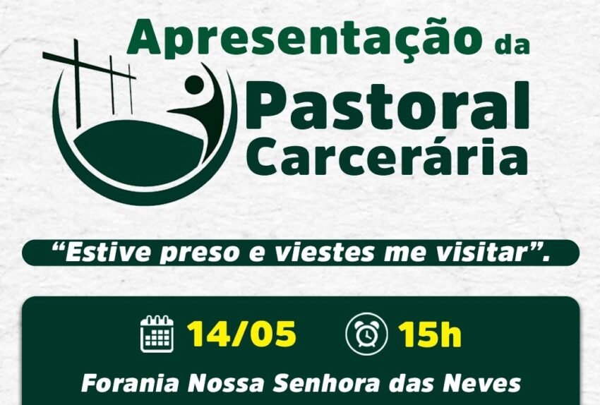 O Setor Social, Político e Ambiental da Rensc convida a todos os leigos, leigas, padres, diáconos, consagrados e consagradas das paróquias da Forania Nossa Senhora das Neves para participarem do encontro de Apresentação da Pastoral Carcerária.