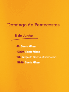Domingo- 08 de junho às 19 horas- Festa de Pentecostes.