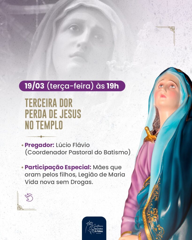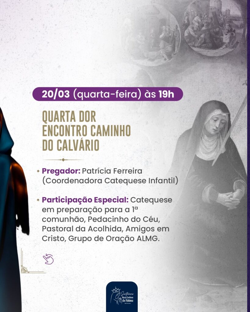 – Dia 20/03/24: Quarta-Feira da Semana das Dores –  Celebração Penitencial, às 19h.