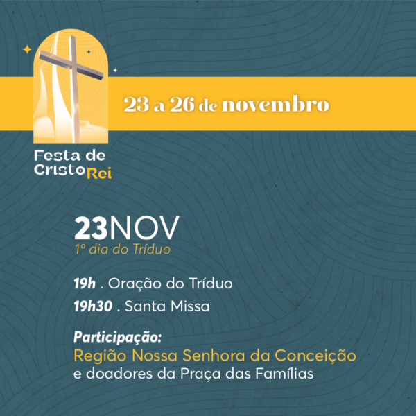 Todos estão convidados para abertura do Tríduo da Festa de Cristo Rei, com a participação especial de todas as paróquias da Região Episcopal Nossa Senhora da Conceição.
