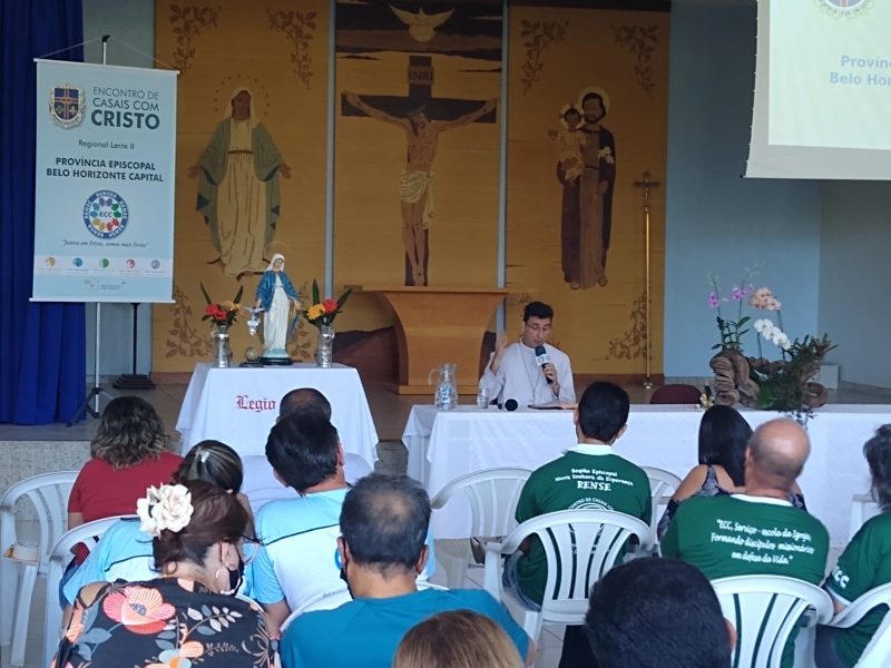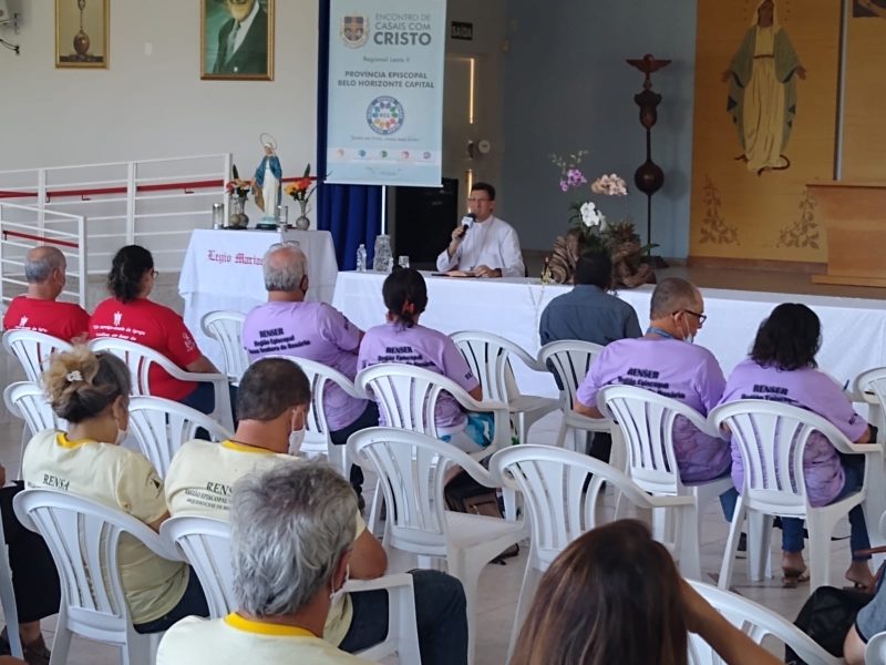Nos dias 12 e 13 de março aconteceu na sede da Legião de Maria em Belo Horizonte, a reunião de formação do encontro de casais com Cristo – ECC. O encontro teve como tema: ECC no caminho para a sinodalidade na Igreja. E o lema: Que todos sejam um, como Tu Pai estás em Mim e Eu em Ti. (Jo 17, 21). Esse encontro teve a participação de todos os casais setoriais e diocesanos de nossa Província de Belo Horizonte Capital. Além do casal arquidiocesano, Jezus e Hercília, e do casal regional Leste II, Lia e Carlos. Tivemos a presença ilustres do bispo auxiliar da arquidiocese de Belo Horizonte referencial para a RENSC, dom Júlio. O diretor espiritual do Regional Leste II Pe Jorge Filho e do diretor espiritual do ECC na RENSC e na arquidiocese de Belo Horizonte, Pe Jorge Paulo. Além de outros casais que contribuíram com palestras e reflexões. D. Adair, bispo referência para o ECC na CNBB, por vídeo conferência nos enviou suas palavras. Tivemos a presença ilustre de alguns padres e seminaristas onde há a presença do ECC. A reunião encerrou com a missa presidida pelo Pe Jorge Paulo, com a presença de todos os casais envolvidos e da presidente e secretário do Senatus da Legião de Maria, a senhora Delma e o senhor Magno.