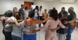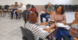O professor convidou os presentes para em grupo de 03 conversarem sobre o que texto quis dizer e o que o texto me leva a dizer para minha luta.