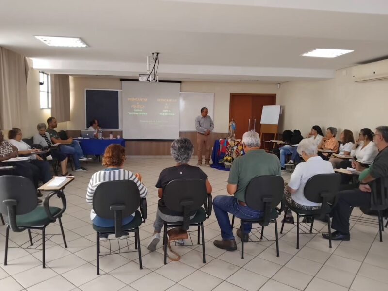 O Professor Edward Guimarães conduziu o encontro e refletiu com os presentes o que é “Reencantar a Política como uma Fé libertadora. Reencantar a Fé com uma boa política” .