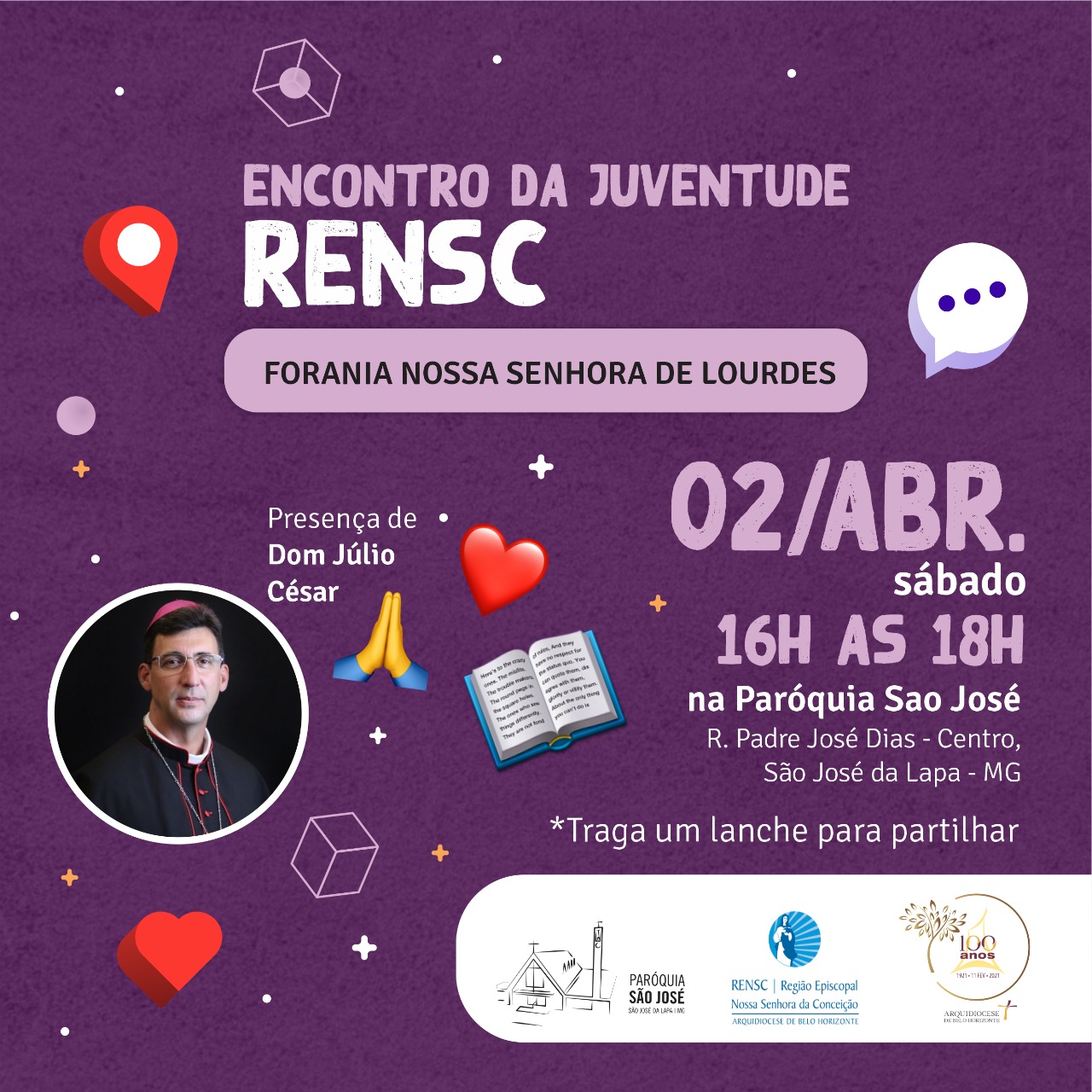 No próximo sábado, dia 02 de abril, Dom Júlio César conduzirá uma tarde de espiritualidade com a presença dos jovens pertencentes às paróquias da Forania Nossa Senhora de Lourdes. O encontro será realizado na Igreja São José em São José da Lapa, a partir das 16h. Ainda dá tempo de você confirmar a sua presença através do whastApp 971851822.