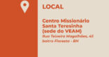 O Vicariato Episcopal para Ação Missionária (Veam) da Arquidiocese de Belo Horizonte convida fiéis e comunidades de fé para participarem dos encontros de Exercícios Espirituais 2024 sobre os períodos do ano litúrgico da Igreja, no Centro Missionário Santa Teresinha (sede do Veam).
