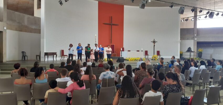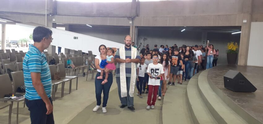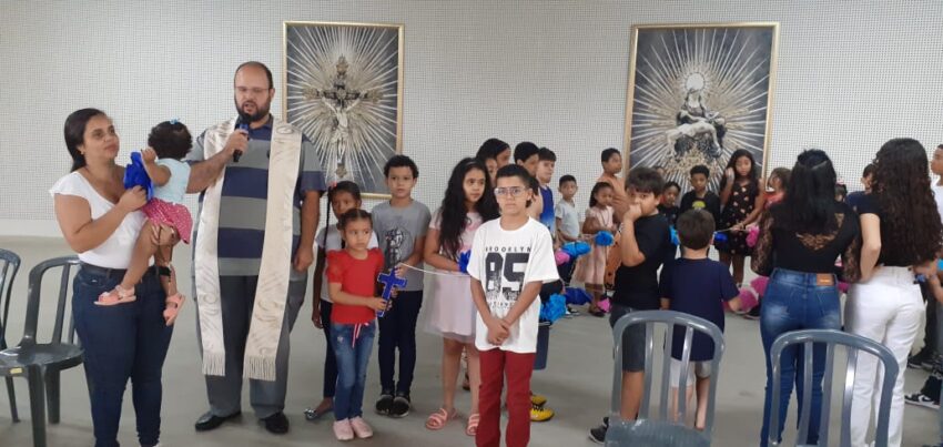 Presença bonita das crianças da catequese da Paróquia Nossa Senhora do Belo Ramo, que vieram acompanhadas de suas famílias.