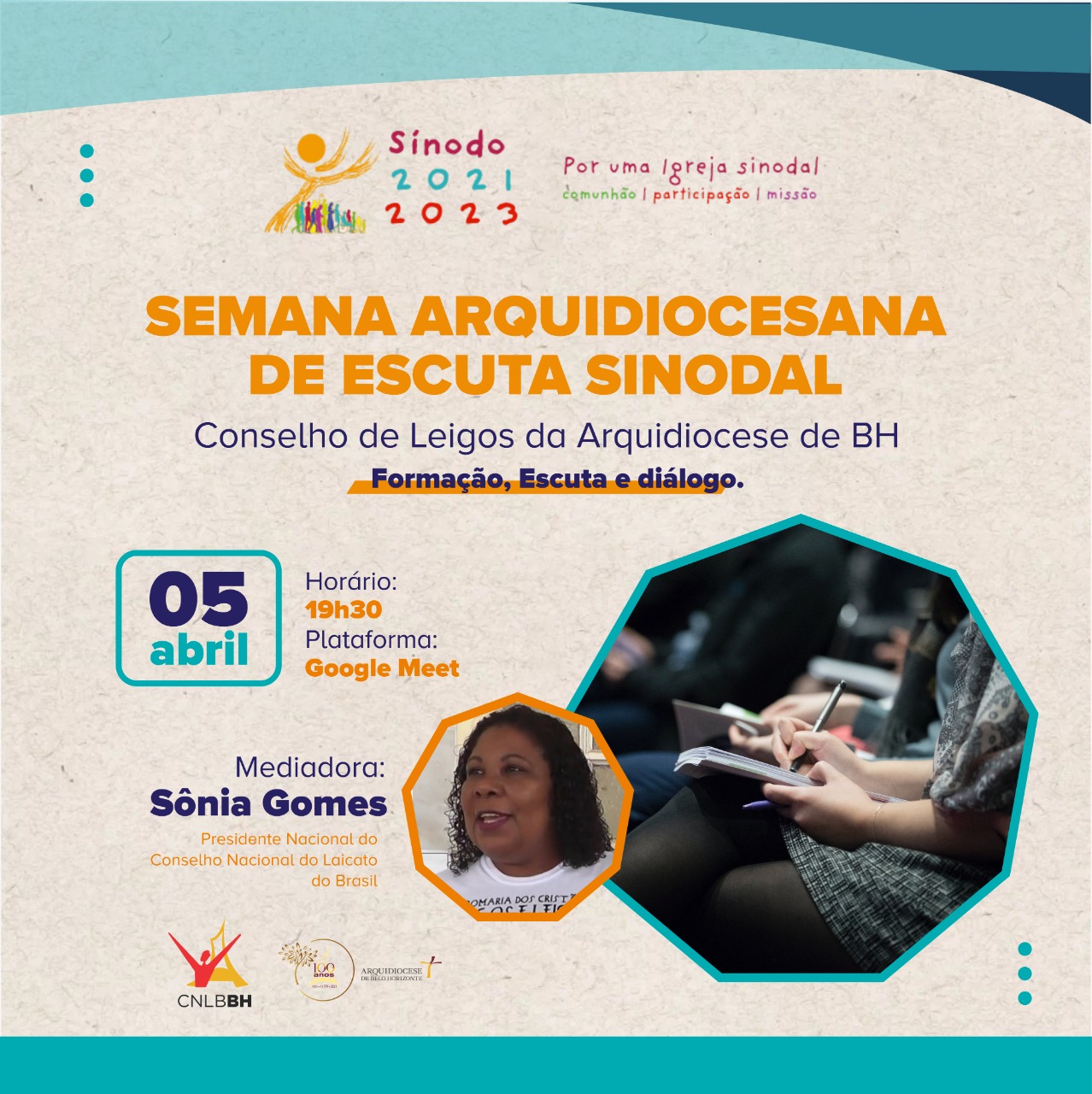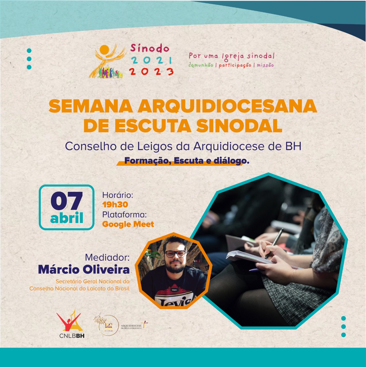 Nos dias 5 e 7 de abril estaremos ao vivo virtualmente, pela plataforma Google Meet, para escutá-los (escuta-los) acerca dessa sinodalidade que buscamos.