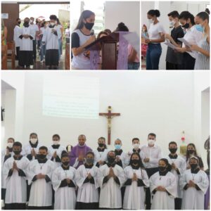 Na manhã deste 5º Domingo da Quaresma (03), na Comunidade Sagrada Família, após alguns meses de preparação, aconteceu a investidura dos novos Cerimoniários. Rezemos por estes jovens que disseram “Sim” para servir ao altar para que sejam fiéis e zelosos no serviço a Deus e aos irmãos.