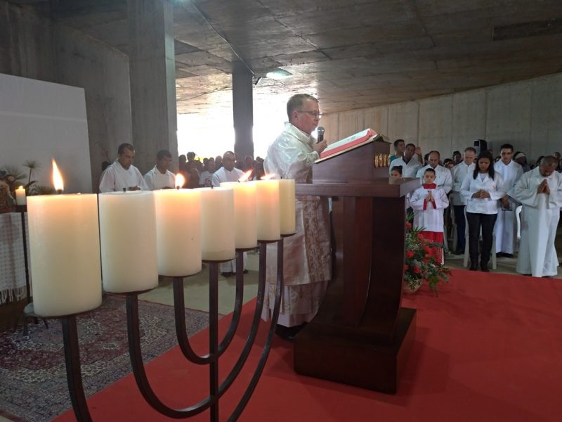 Em sua homilia, o arcebispo dom Walmor destacou que os avanços nas obras da Catedral Cristo Rei são possíveis graças aos que têm contribuído para a edificação com doações. O Arcebispo lembrou que a Catedral será instrumento para a Igreja poder servir, cada vez mais, a sociedade, explicando o sentido da Festa de Cristo Rei: “A realeza de Cristo é serviço e vida ofertada. Que possamos, a exemplo de Cristo, oferecer a nossa vida para construir uma sociedade mais justa, solidária e fraterna”.