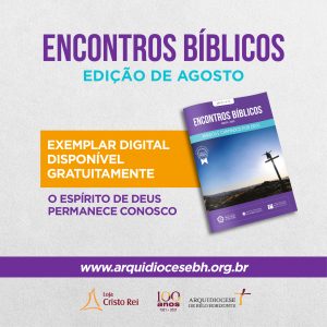 Em comunhão com toda a Igreja no Brasil, o Vicariato Episcopal para Ação Pastoral da Arquidiocese de Belo Horizonte, por meio da Comissão Arquidiocesana de Publicações, disponibiliza o subsídio com os Encontros Bíblicos para o mês de agosto. O roteiro está sendo disponibilizado pela internet, de modo gratuito.