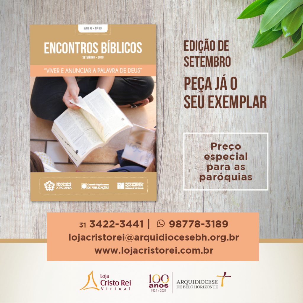 O Vicariato Episcopal para a Ação Pastoral da Arquidiocese de Belo Horizonte, por meio da Comissão Arquidiocesana de Publicações, divulga o subsídio Encontros Bíblicos, especialmente preparado para ser vivenciado no mês de SETEMBRO.