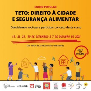 ? Construíram a proposta do curso: a 6ª SSB, Rede Jubileu Sul Brasil, União Nacional por Moradia Popular, Movimento Nacional da População de Rua, Campanha Despejo Zero, Instituto Polis e Projeto Brasil Cidades (Br Cidades).