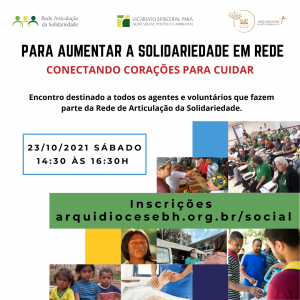 Com o tema “Para aumentar a solidariedade em rede: conectando corações para cuidar” o Vicariato Episcopal para a Ação Social, Política e Ambiental promove o 4º encontro online da Rede de Articulação da Solidariedade.