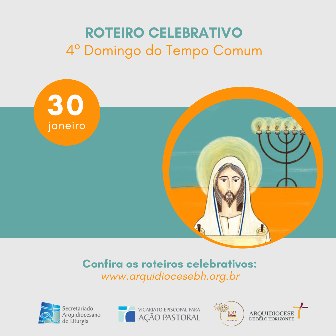 No dia 30 de janeiro, as comunidades de fé da Arquidiocese de Belo Horizonte celebram o 4º Domingo do Tempo Comum. Para contribuir com as suas orações em casa, com a sua família, o Secretariado Arquidiocesano de Liturgia (SAL) disponibiliza o roteiro produzido pela Irmã Penha Carpanedo, da Congregação Discípulas do Divino Mestre (Apostolado litúrgico), redatora da Revista de Liturgia e membro da Rede Celebra de animação litúrgica.
