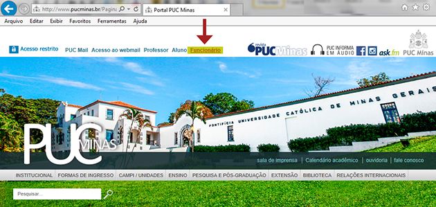 1º passo: Entre no site: www.pucminas.br (a partir do Internet Explorer);