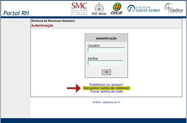 4º passo: clique em “Recuperar senha de sistemas”. Essa opção está logo abaixo do quadro de autenticação. Sua senha será enviada automaticamente para o seu e-mail, cadastrado no Setor de Recursos Humanos da Mitra Arquidiocesana.